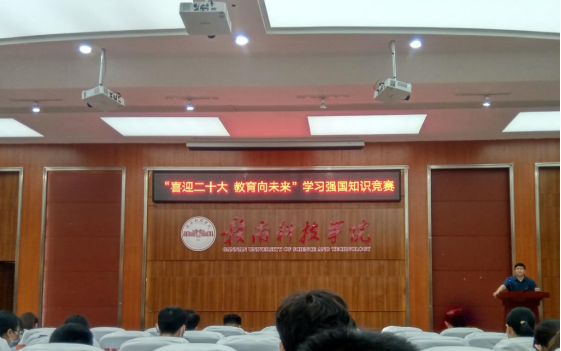 为进一步激发教育系统干部职工深入学习贯彻习近平新时代中国特色社会主义思想的热情,推动广大党员干部充分运用好“学习强国”平台,营造“喜迎党的二十大、感恩奋进勇争先”的浓厚氛围,6月22日,赣州市委教育工委举班了全市市属院校“喜迎二十大,教育向未来”学习强国知识竞赛,学院部分教师到现场参加竞赛。