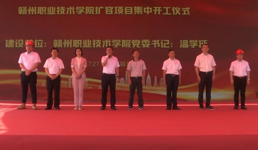 7月27日上午,赣州职业技术学院扩容项目集中开工仪式隆重举行。学院党委书记温学延出席活动并宣布开工,赣州经济技术开发区管委会二级调研员卓邦友,市委教育工委委员、市教育局副局长赖晓琴,学院党委副书记、院长黄鹏,赣州城投集团党委委员、总工程师王远平,赣州市就业创业中心副主任刘全胜及学院在家领导班子成员出席活动。