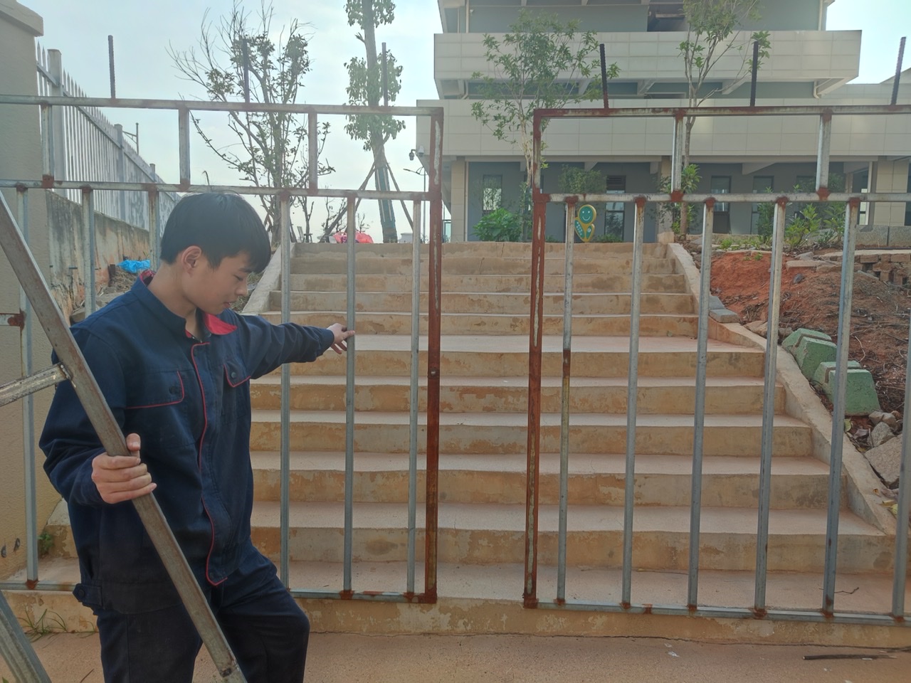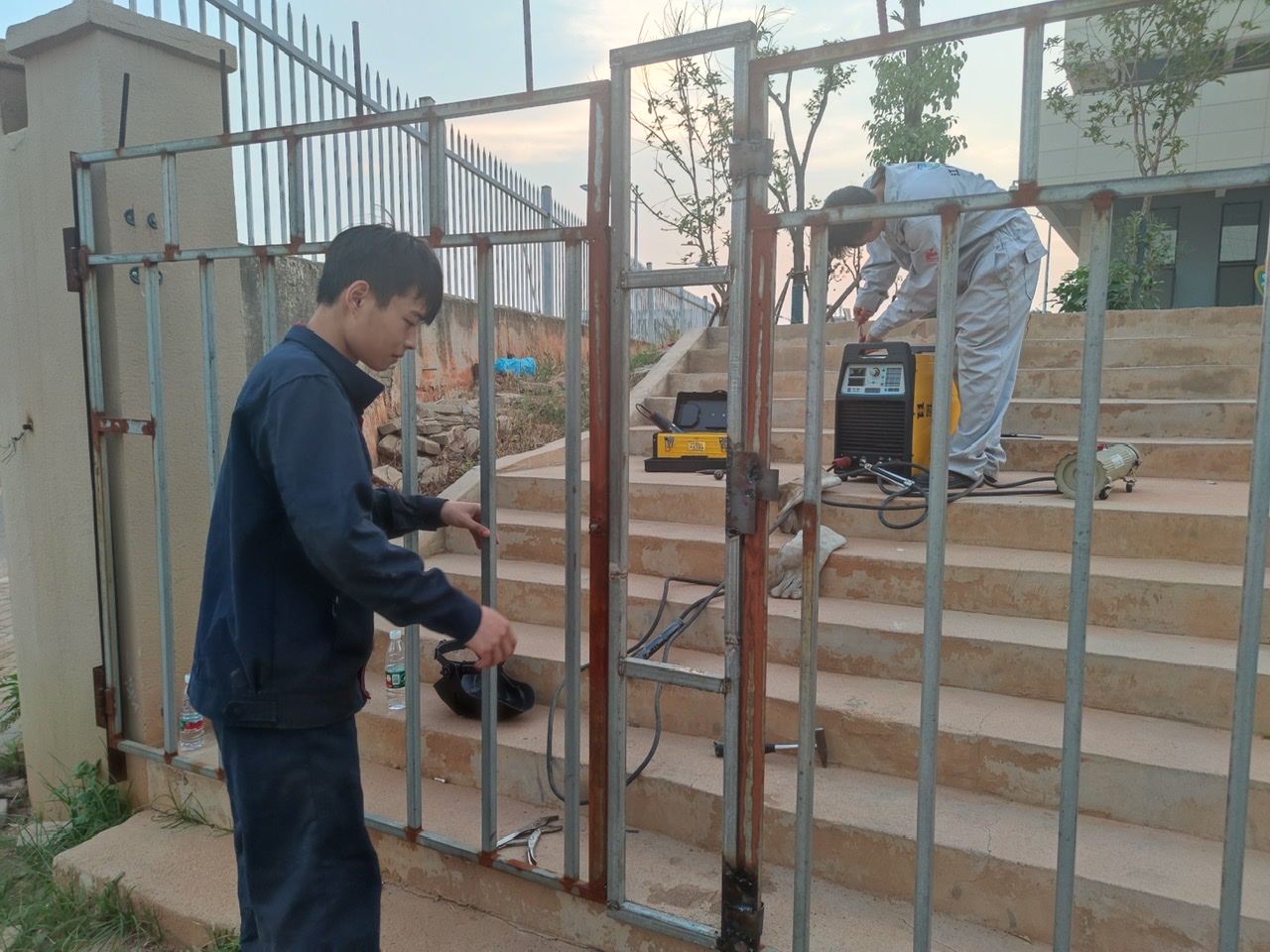 9月24日,在学院如火如荼开展的劳动教育实践周期间,智能制造系老师王中强带领2020级数控2班的学生叶龙和2020级模具班的学生刘飞为学院公共实训基地修缮铁门。
