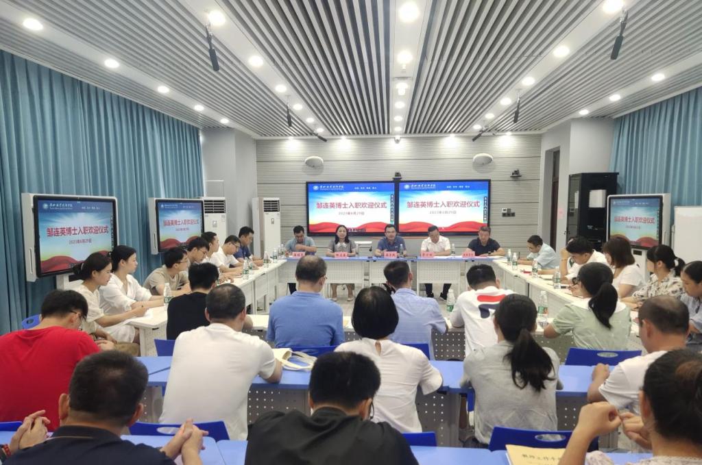 温学延指出,邹连英博士作为学院引进的第一个博士,是我们落实“人才强校”战略、广纳天下英才的重要举措。邹连英博士的引进,必将影响学院所在学科专业的发展,必将带来学院学科专业发展格局的变化和发展重点与方向的转移,必将有力推进学院“双高”建设的发展步伐。希望邹连英博士入职后,能充分发挥自身优势,聚焦人才培养和学科建设,做好学院教学科研的领头羊,影响和带动学院教学科研水平的整体提升。同时要求全体教师向邹连英博士学习,积极为学院高质量发展贡献自己的聪明才智。