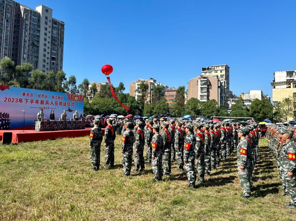 9月17日上午,章贡区、经开区、蓉江新区举行2023年下半年新兵入伍欢送仪式,学院保卫处(人武部)干部、新兵家属参加欢送仪式。