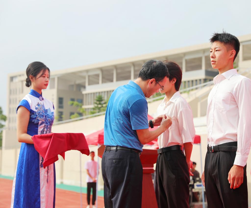 最后,他希望同学们能够经过三年的努力,掌握“十八般武艺”,成为一个自信美丽、英俊潇洒、有社会责任感的年轻人,雄赳赳气昂昂地奔赴社会大舞台,成就一份事业,为社会做出一份贡献!