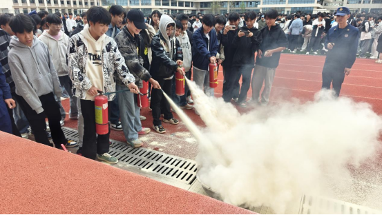 为提升师生应急实操能力,学院特邀请科技城消防站的消防员现场授课。消防员结合典型校园火灾案例,详细讲解灭火器的工作原理、适用场景及操作要领,着重强调了“提、拔、握、压”的核心操作步骤。在消防员的专业指导下,学生代表依次手持灭火器进行实战灭火演练,精准完成灭火操作,现场响起阵阵掌声。