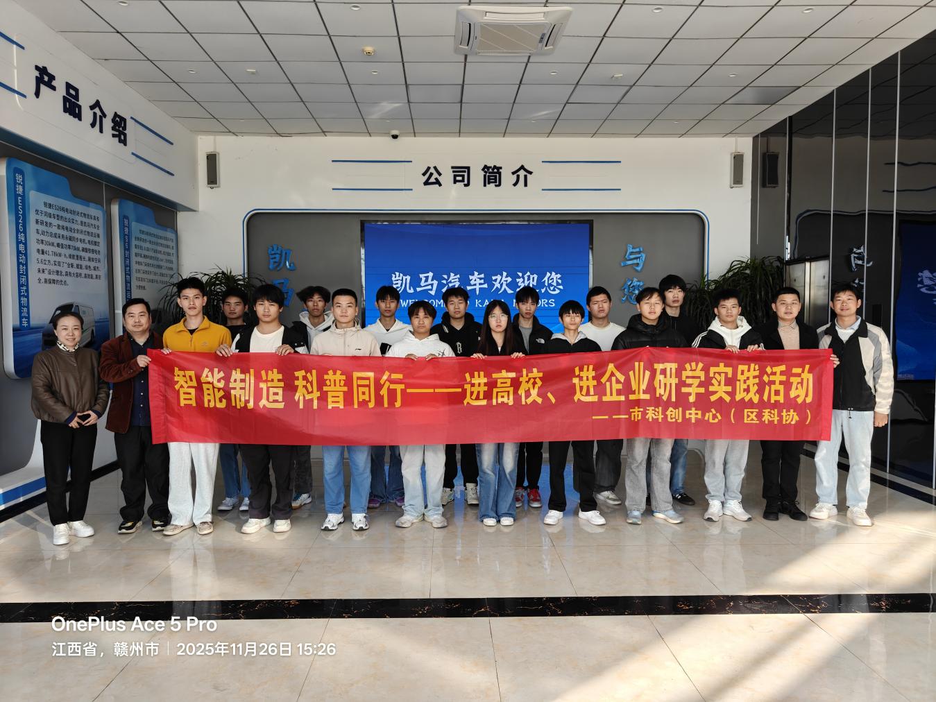 11月26日,在市科创中心(区科协)的支持下,江西赣州技师学院新能源汽车检测与维修专业的同学们,怀揣着对绿色未来的憧憬与对尖端技术的渴望,开启了一场“知行合一”的研学之旅。同学们先后走进江西理工大学锂电池展厅与山东凯马汽车制造有限公司赣州分公司,零距离感受从核心部件到整车制造的新能源汽车全产业链。