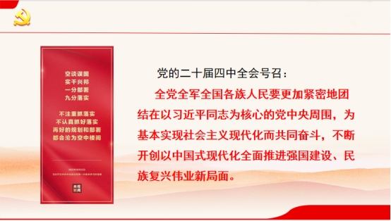 陈相飞校长以《深入学习贯彻二十届四中全会精神——乘势而上、接续推进中国式现代化建设》为题,围绕全会重大意义、核心要义与实践要求,以“历史性成就—时代性部署—战略性行动”为脉络,系统回顾了“十四五”时期我国在经济、科技、综合国力等方面取得的标志性进展,深刻阐释了“十五五”时期发展的指导思想、重大原则、主要目标和重点任务。他结合赣州发展实际与技工教育使命,强调要坚持教育、科技、人才一体推进,加快培育适应新质生产力发展的高素质技术技能人才,为中国式现代化筑牢人才根基,为我院深入贯彻落实全会精神提供了重要指导。